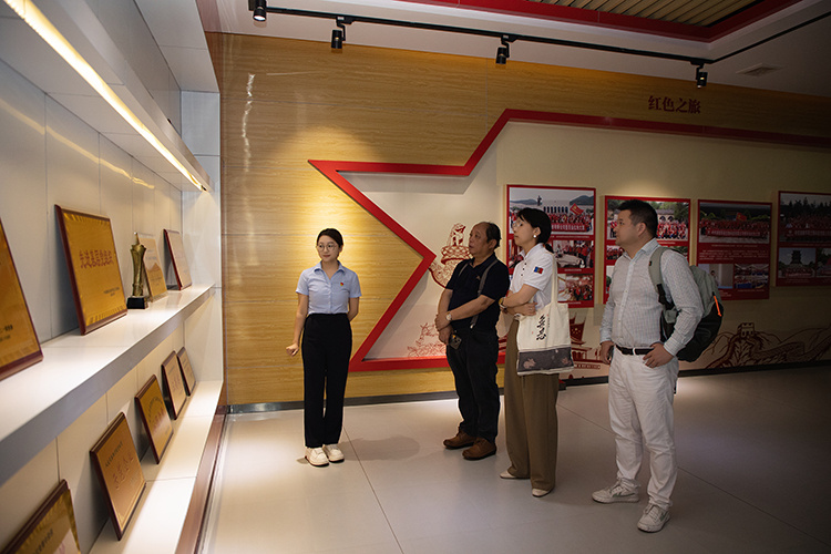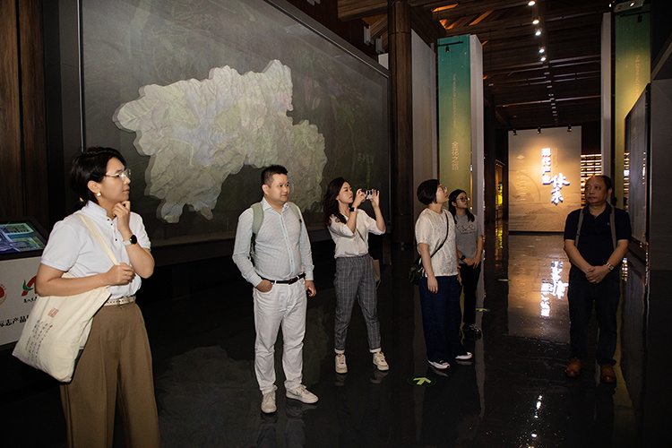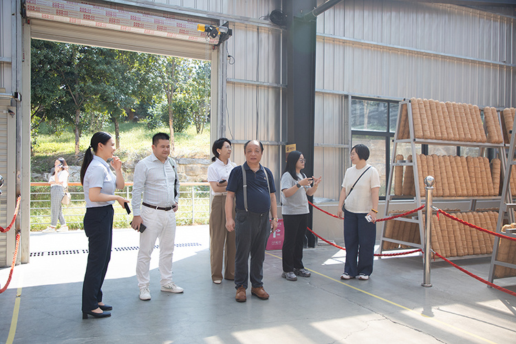 10日上午,考察团一行深入理想华莱江南茶园基地、万隆黑茶产业园生产车间与研发中心,以及中华文化馆、科技馆、安化现代农业产业园成果展示馆,深度调研企业发展与产业概况。在江南茶园基地,考察团被层层茶树与现代化种植管理模式触动,他们详细询问种植标准、生态保护及产量效益,高度肯定企业绿色有机种植理念;在万隆黑茶产业园生产区,考察团近距离观察茶叶储青、揉捻、渥堆至压制、干燥、包装的全流程自动化加工,感受传统技艺与现代科技的融合创新;在研发中心,通过专业科研设备与研发人员的专注状态,考察团看到企业对黑茶品质提升与产品创新的重视,并就黑茶研究、新品开发与科研人员交流;在中华文化馆与科技馆,借助图文资料、实物展品及情景再现,考察团既深化了对中国茶文化源远流长的认知,也体会到企业在黑茶产业传承创新中的不懈探索。当日,考察团一行还观看了公司打造的大型实景舞台剧《天下茶道》,再一次沉浸式感受到了黑茶文化的深厚底蕴与独特魅力。